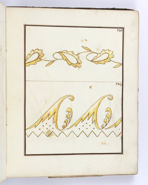Carrera, C., e figlioOriginal price £2,400.00 - Original price £2,400.00Original price£2,400.00£2,400.00 - £2,400.00Current price £2,400.00| /[Carrera, C., e figlio] [Cover label:] Bordini per ricamo in lume. [Italy] [1780-1820]. Coloured hand-drawn pattern-book of embroidered borders fro...
