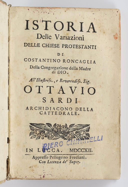 Roncaglia, Constantino; Bossuet, Jacques BénigneOriginal price £280.00 - Original price £280.00Original price£280.00£280.00 - £280.00Current price £280.00| /Roncaglia, Constantino (1677-1737) [Bossuet, Jacques Bénigne (1627-1704)]: Istoria delle Variazioni delle Chiese Protestanti [...]. In Lucca, appre...