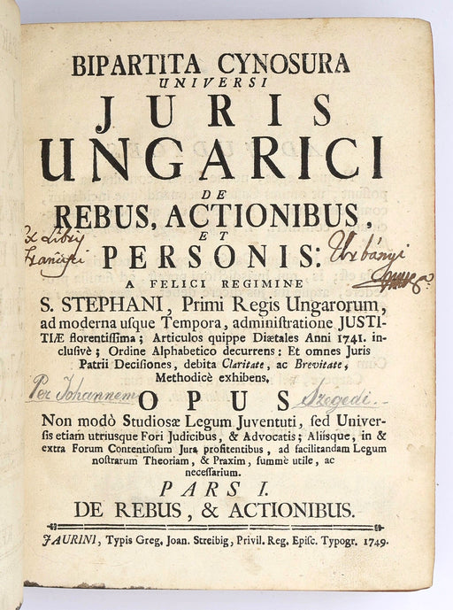 Szegedi, Johannes (S.J.) [Szentkereszty, Paul]Original price £450.00 - Original price £450.00Original price£450.00£450.00 - £450.00Current price £450.00| /Szegedi, Johannes, S.J. [Szentkereszty, Paul:] Bipartita cynosura universi juris Hungarici de rebus, actionibus, et personis: a felici regimine S. ...