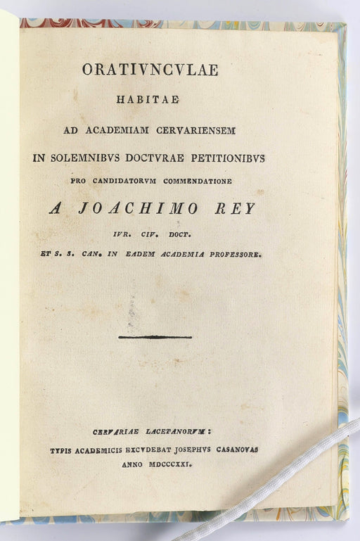 Rey, JoaquínOriginal price £240.00 - Original price £240.00Original price£240.00£240.00 - £240.00Current price £240.00| /Rey, Joaquín: Oratiunculae habitae ad Academiam Cervariensem in solemnibus docturae petitionibus pro candidatorum commendatione, a Joachimo Rey, iu...