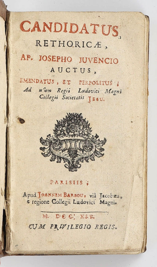 Jouvancy, Joseph, (S.J.); Pomey, François-Antoine, (S.J.)Original price £250.00 - Original price £250.00Original price£250.00£250.00 - £250.00Current price £250.00| /Jouvancy, Joseph, S.J. [Pomey, François-Antoine, S.J.]: Candidatus rethoricae, ap[sic.] Josepho Juvencio auctus, emendatus, et perpolitus; ad usum ...