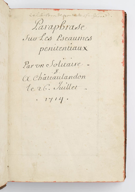 'Un solitaire'Original price £950.00 - Original price £950.00Original price£950.00£950.00 - £950.00Current price £950.00| /‘Un solitaire’: Paraphrase sur les Pseaumes penitentiaux. Châteaulandon, 1714-1716. A neatly presented manuscript dedicated to paraphrases of the p...