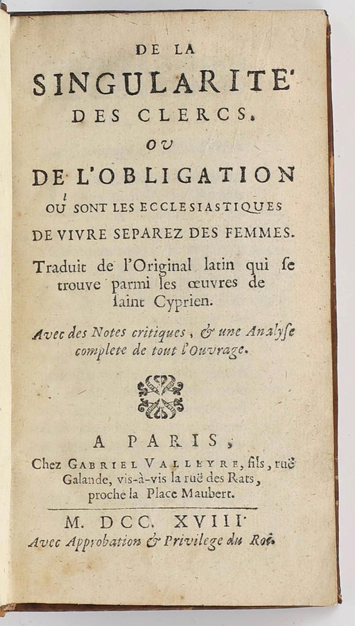 Cyprian, Saint, of CarthageOriginal price £260.00 - Original price £260.00Original price£260.00£260.00 - £260.00Current price £260.00| /Cyprian, Saint, of Carthage (pseudo-): De la singularité des clercs, où de l'obligation où sont les ecclesiastiques de vivre separez des dames. Tra...