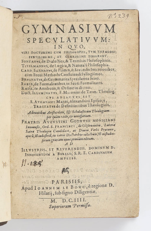 Gothusius, Augustinus (O.F.M.) (ed.)Original price £1,950.00 - Original price £1,950.00Original price£1,950.00£1,950.00 - £1,950.00Current price £1,950.00| /[Scotism] Gothusius, Augustinus, O.F.M. (ed.): Gymnasium speculativum: in quo, viri doctissimi, cum philosophi, tum theologi subtilissime, et clari...