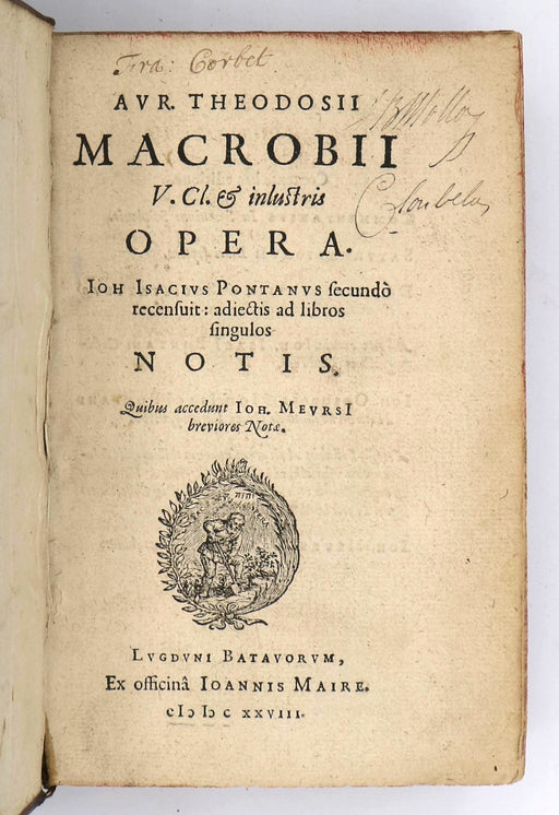 MacrobiusOriginal price £950.00 - Original price £950.00Original price£950.00£950.00 - £950.00Current price £950.00| /[Swiftiana] Macrobius: Aur. Theodosii Macrobii V. Cl. & inlustris Opera. Ioh. Isacius Pontanus secundò recensuit: adiectis ad libros singulos n...