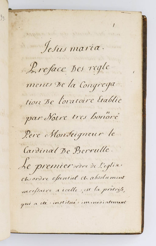 Bérulle, Pierre de; Condren, CharlesOriginal price £950.00 - Original price £950.00Original price£950.00£950.00 - £950.00Current price £950.00| /[Bérulle, Pierre de; Condren, Charles]: Jesus Maria. Preface des reglements de la Congregation de l’oratoire Etablie par Notre tres honoré Pere Mon...
