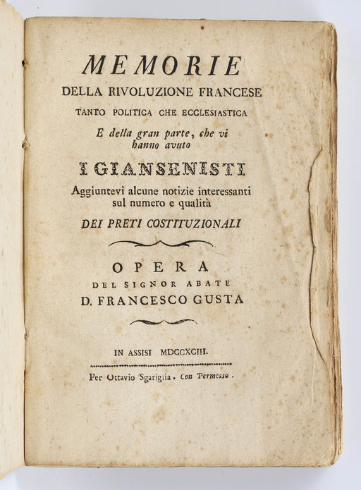 Gustà, FrancescOriginal price £650.00 - Original price £650.00Original price£650.00£650.00 - £650.00Current price £650.00| /Gustà, Francesc: Memorie della Rivoluzione Francese tanto politica che ecclesiastica e della gran parte, che vi hanno avuto i giansenisti. Aggiunte...