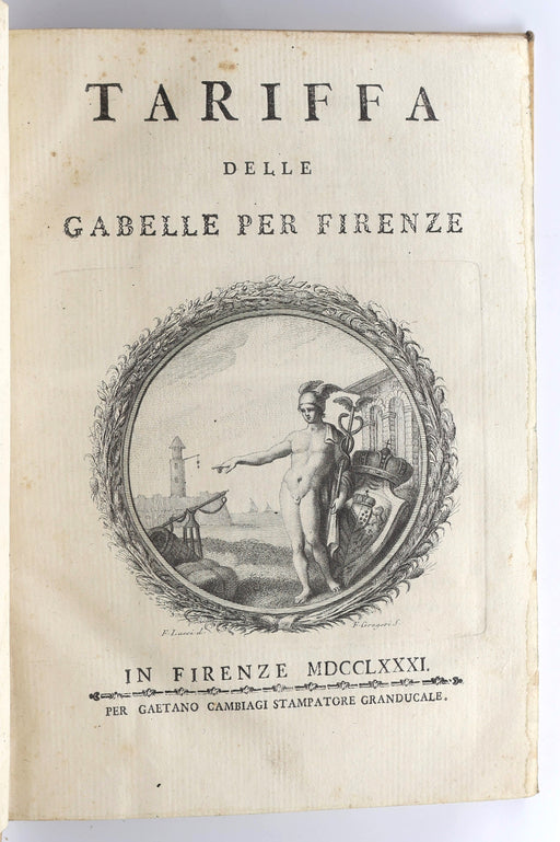 Tuscany, Grand Duchy ofOriginal price £750.00 - Original price £750.00Original price£750.00£750.00 - £750.00Current price £750.00| /[Tuscany, Grand Duchy of:] Tariffa delle gabelle per Firenze. In Firenze [Florence], per Gaetano Cambiagi 1781. Containing information on consumpti...