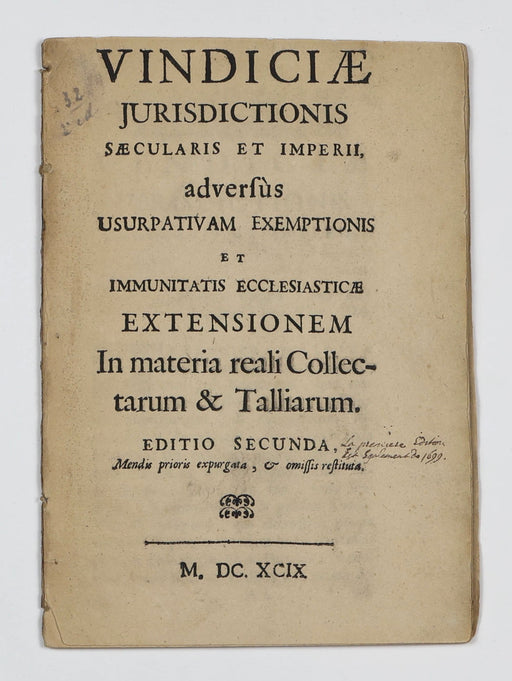 Vindiciae jurisdictionisOriginal price £120.00 - Original price £120.00Original price£120.00£120.00 - £120.00Current price £120.00| /[Vindiciae jurisdictionis:] Vindiciae jurisdictionis saecularis et imperii, adversus usurpativam exemptionis et immunitatis ecclesiasticae extensio...