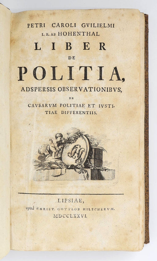 Hohenthal, Peter Karl Wilhelm vonOriginal price £400.00 - Original price £400.00Original price£400.00£400.00 - £400.00Current price £400.00| /Hohenthal, Peter Karl Wilhelm von: Liber de politia, adspersis observationibus, de causarum politiae et iustitiae differentiis. Lipsiae [Leipzig] a...