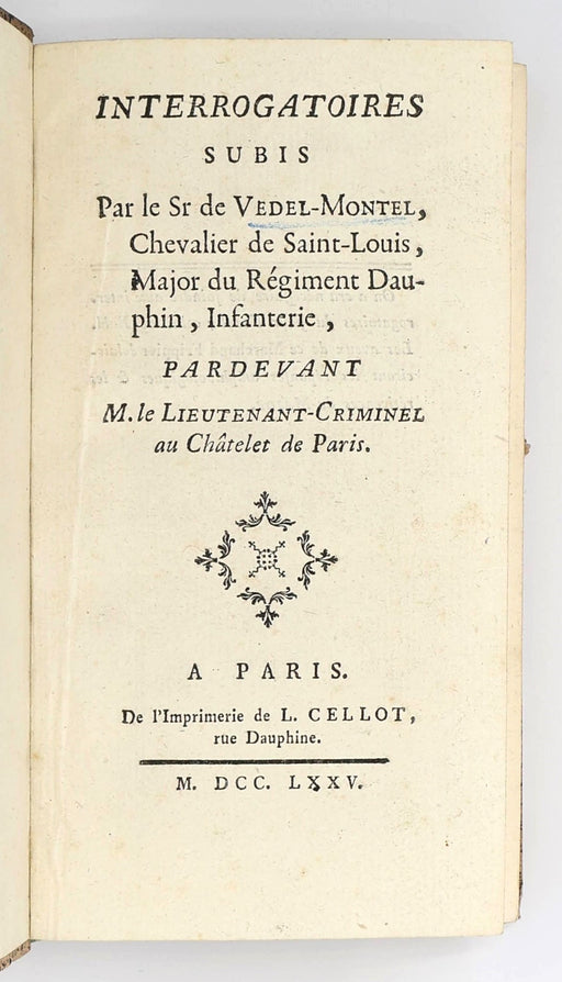 Richelieu-Saint-Vincent affairOriginal price £500.00 - Original price £500.00Original price£500.00£500.00 - £500.00Current price £500.00| /[Richelieu-Saint-Vincent affair]: Interrogatoires subis par le Sr de Vedel-Montel, Chevalier de Saint-Louis, Major du Régiment Dauphin, Infanterie,...