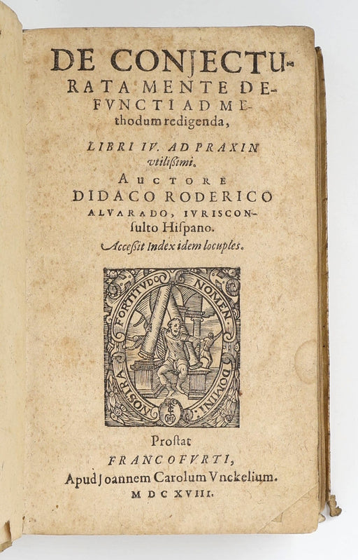 Rodriguez Alvarado, DiegoOriginal price £250.00 - Original price £250.00Original price£250.00£250.00 - £250.00Current price £250.00| /Rodriguez Alvarado, Diego: De Coniecturata Mente Defuncti Ad Methodum redigenda: Libri IV. Ad Praxin utilißimi [...]. Francofurti [Frankfurt], apud...