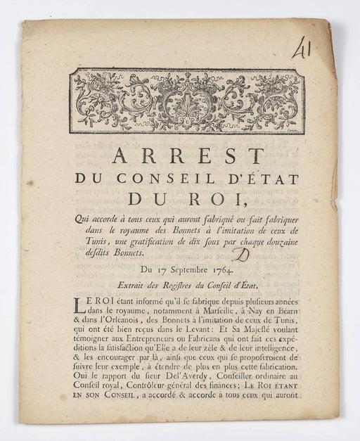 France, Conseil d'EtatOriginal price £165.00 - Original price £165.00Original price£165.00£165.00 - £165.00Current price £165.00| /[French industry and colonialism] [France. Conseil d'Etat:] Arrest du Conseil d'État du Roi, qui accorde à tous ceux qui auront fabriqué ou fait fa...