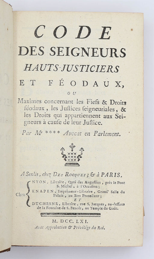 Henriquez, J.Original price £195.00 - Original price £195.00Original price£195.00£195.00 - £195.00Current price £195.00| /[Henriquez, J.:] Code des seigneurs, hauts-justiciers et féodaux, ou maximes concernant les fiefs & droits féodaux, les justices seigneuriales,...