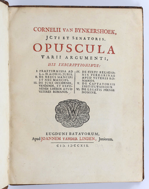 Bynkershoek, Cornelius vanOriginal price £250.00 - Original price £250.00Original price£250.00£250.00 - £250.00Current price £250.00| /Bynkershoek, Cornelius van: Opuscula varii argumenti, his inscriptionibus: I. Praetermissa ad L.2. D. De origine iuris. II. De rebus mancipi et nec...